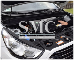 Figure 4. A view under the bonnet of a hydrogen fuel cell car. The fuel cell stack includes about 400 individual fuel cells. Photo: The author.