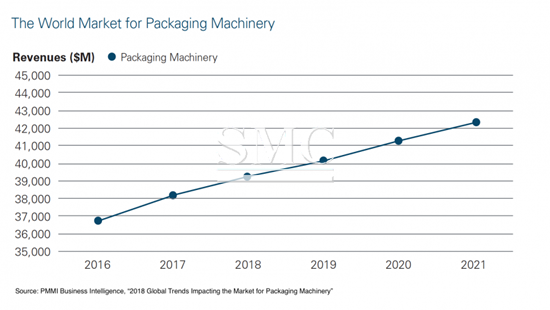 2. China is expected to grow the fastest, at a CAGR of 5.6% from 2016 to 2021. The global CAGR for packaging machinery is forecast to be 2.8% in the same period.