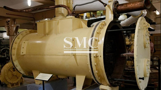 A surface condenser is a commonly used term for a water- cooled shell and tube heat exchanger installed to exhaust steam from a steam turbine in thermal power stations. These condensers are heat exchangers which convert steam from its gaseous to its liquid state at a pressure below atmospheric pressure. Where cooling water is in short supply, an air-cooled condenser is often used. An air-cooled condenser is however, significantly more expensive and cannot achieve as low a steam turbine exhaust pressure (and temperature) as a water-cooled surface condenser.